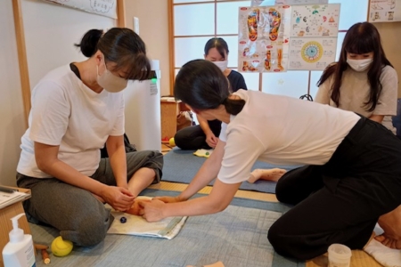 足裏の神経刺激により、肩コリ、腰痛の改善、脳の活性化、運動神経の向上、精神の安定、免疫力の強化に。棒を使用するので不調な場所は痛みを感じる事があります。食後は足揉みが出来ませんので、朝食は9時までにお済ませ下さい。